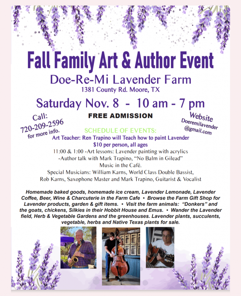 Another drastic change came to mind, and I enrolled at a local college, got a degree in English and, ironically, became a teacher. A drastic change indeed for someone who hated school. During my first two years of teaching, I earned an MA in Liberal Studies with a concentration in creative writing from Denver University. I taught high school English for twelve years and loved it. As fate would have it, however, I had another novel building in me, so I decided to retire. We moved to Texas and I wrote my second novel a western called No Balm in Gilead.